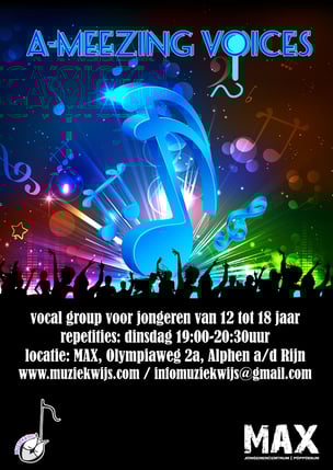 Stichting MAX is een partnerschap aangegaan met Muziekwijs. Hierdoor is het jongerencentrum/poppodium in Alphen aan den Rijn in één klap twee activiteiten rijker. Op dinsdagmiddag repeteert het A-meezing kinderkoor (voor kinderen van 6-12 jaar) aan de Olympiaweg 2a. Op dinsdagavond start de gloednieuwe vocalgroup A-meezing Voices.
